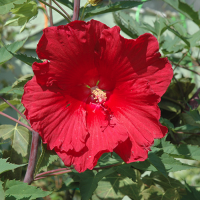 Гибискус Fireball (Файербол) – декоративный красивоцветущий многолетник для сада. Цветки гибискуса крупные ярко-красные, диаметром 30 см, украшают зелень куста с красивой ажурной листвой, придавая саду особого помпезного настроения.