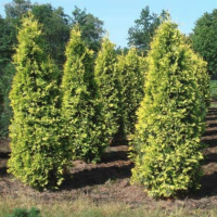 Самый ценный сорт для изгороди среди туй с золотистой окраской хвои. Позволяет создать интенсивно-оранжево-желтую стену, которая контрастно смотрится на фоне других более темных растений или стен.