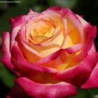 Чайно-гибридная роза Пульман, как и другие двухцветные цветы, завораживает садоводов причудливыми и необычными сочетаниями красок. В ее огромных (до 14 см в обхвате!) бутонах соединились самые теплые и нежные тона. Густомахровые лепестки Пульман, собранные в плотные соцветия, у самого основания имеют сливочно-желтый окрас, а вот по краям окрашены в насыщенно-розовый цвет.